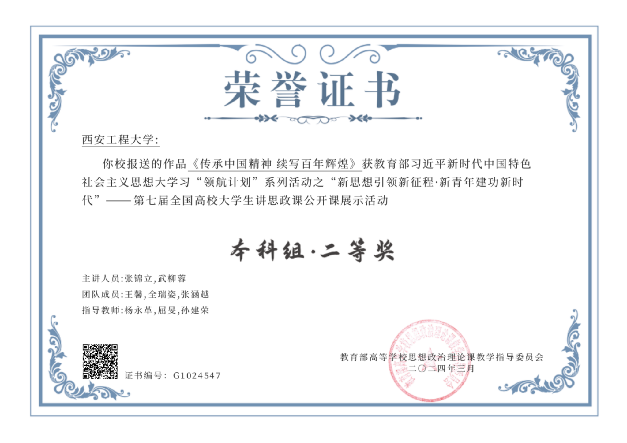 近日,由教育部高校思政课教学指导委员会主办、南开大学承办的“新思想引领新征程·新青年建功新时代”第七届全国高校大学生讲思政课公开课展示活动获奖名单公布,best365官网马克思主义学院学生张锦立、武柳蓉主讲,教师杨永革、屈旻、孙建荣指导的“场馆里的思政课”——《传承中国精神 续写百年辉煌》作品在本届活动中斩获二等奖。