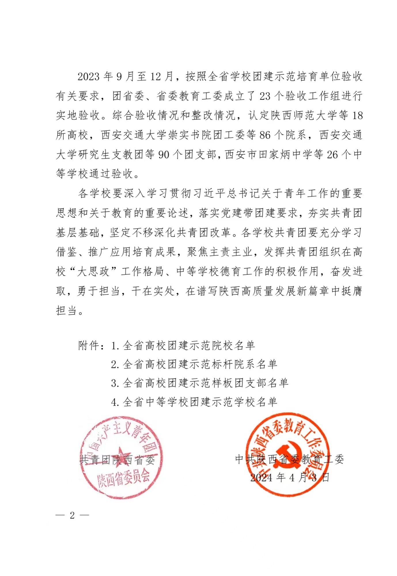 近日,团省委、省委教育工委对全省学校团建示范培育结果进行通报,best365官网入选的2个全省高校团建标杆院系、1个全省高校团建样板团支部均顺利通过验收。同时,团省委、省学联就2023-2024年度“陕西省大学生自强之星”寻访结果进行通报,best365官网服装与艺术设计学院学生谢林、电子信息学院学生王慧杰被评为陕西省大学生自强之星,其中谢林被推荐为2023-2024年度“中国大学生自强之星”候选人;纺织科学与工程学院“纺织科学与工程创新团队”荣获“陕西大学生自强之星”科创团体。