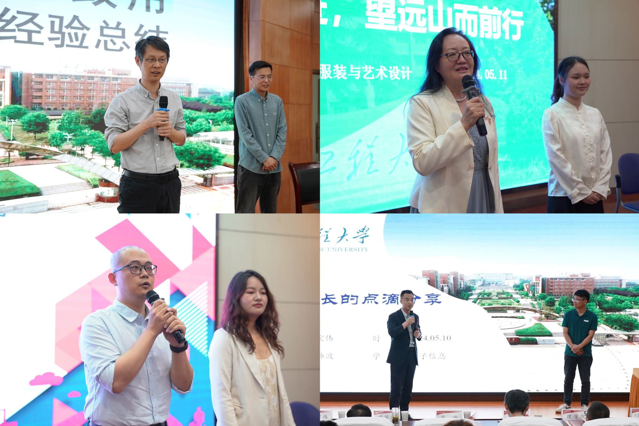 王九鑫、刘帅波、南静静、周林娜分别结合自身的学习与成长经历,深入交流了导学关系、科研创新、学科竞赛、职业规划、博士报考等方面的经验和感悟,他们的报告思路清晰、贴近实际、数据详实、案例生动、亮点突出,具有很好的借鉴性。苏耀恒、张宏伟、支超、刘驰四位导师分别结合几位同学的成长经历和自身工作经验对报告进行了讲评,从导师的视角分享了几位同学的优秀品质、鲜明特点、成长历程等内容,并对广大研究生高质量完成学业和职业发展提出建议。现场还进行了互动问答,气氛热烈。