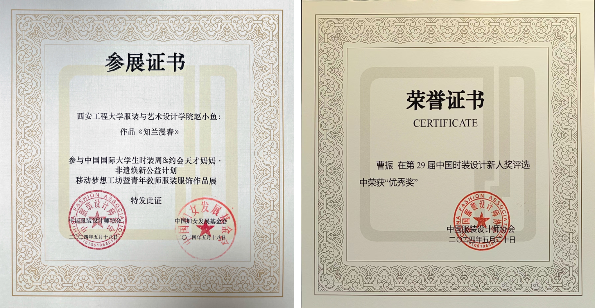 5月15日至20日,2024中国国际大学生时装周在北京隆重举行,校党委书记马万清、副校长戴鸿出席best365官网毕业生设计作品专场发布会。best365官网服装与艺术设计学院荣获“2024中国国际大学生时装周人才培养成果奖”,2020级服装与服饰设计卓越班熊子傲同学荣获工艺制作奖,2020级服装与服饰设计3班曹振同学荣获“第29届中国时装设计新人奖评选优秀奖”。