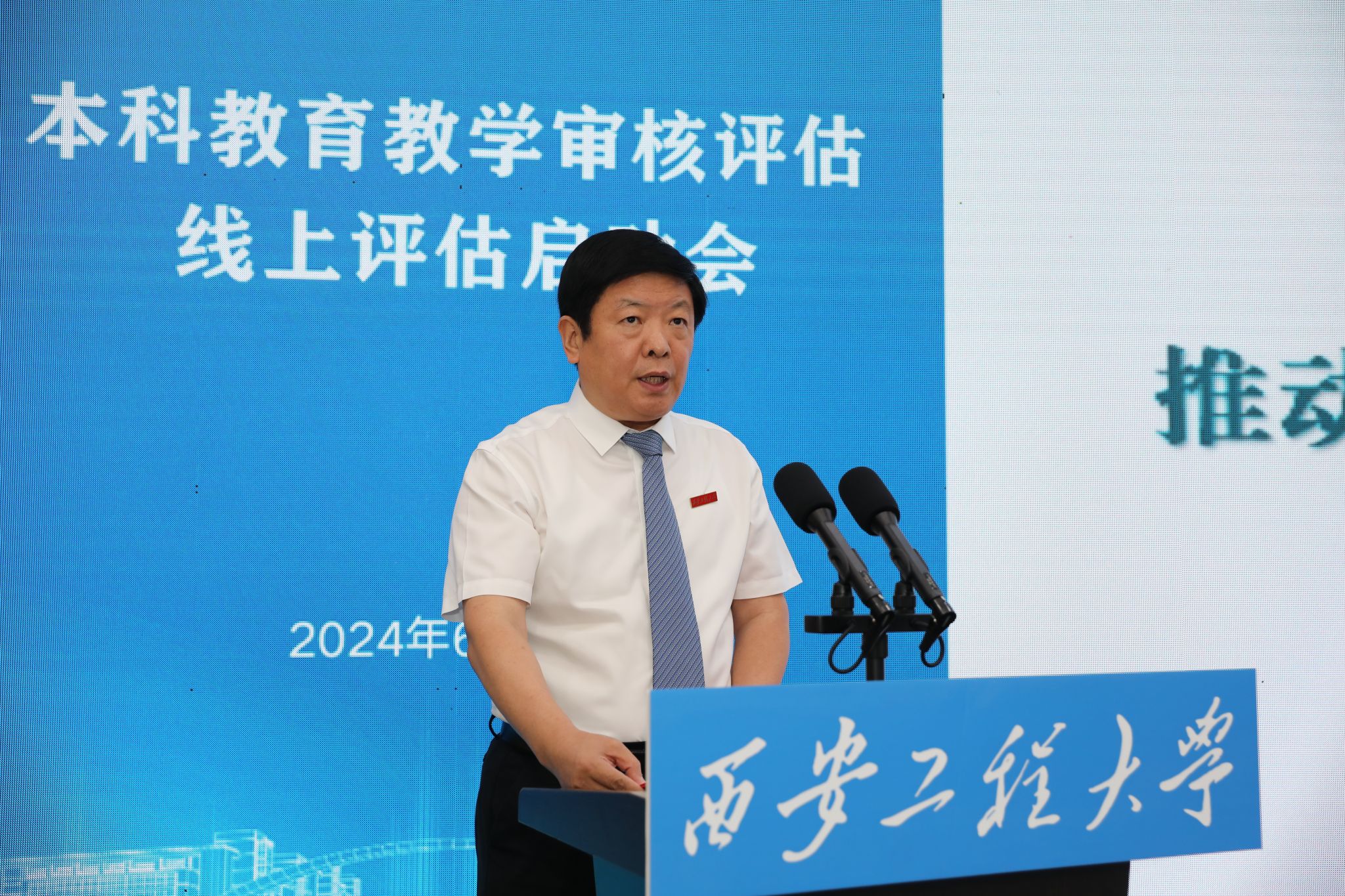 高强代表陕西省教育厅向各位专家表示欢迎和感谢。他介绍了陕西省审核评估工作做法,并对学校此次审核评估提出了三点要求:一是学校要以平常心、平常态对待评估,加强自评自建和自改,确保评估过程求深求细,评估结果求真求实;二是要在本轮审核评估中,进一步优化学科专业布局结构,充分发挥办学特色和优势,聚焦人才培养机制改革、特色专业群建设等命题,思考如何更好地服务国家战略和区域经济发展;三是要珍惜难得机会,为专家提供全面信息,做好服务保障,配合好专家工作,认真听取专家意见和建议,共商学校高质量发展新路径。
