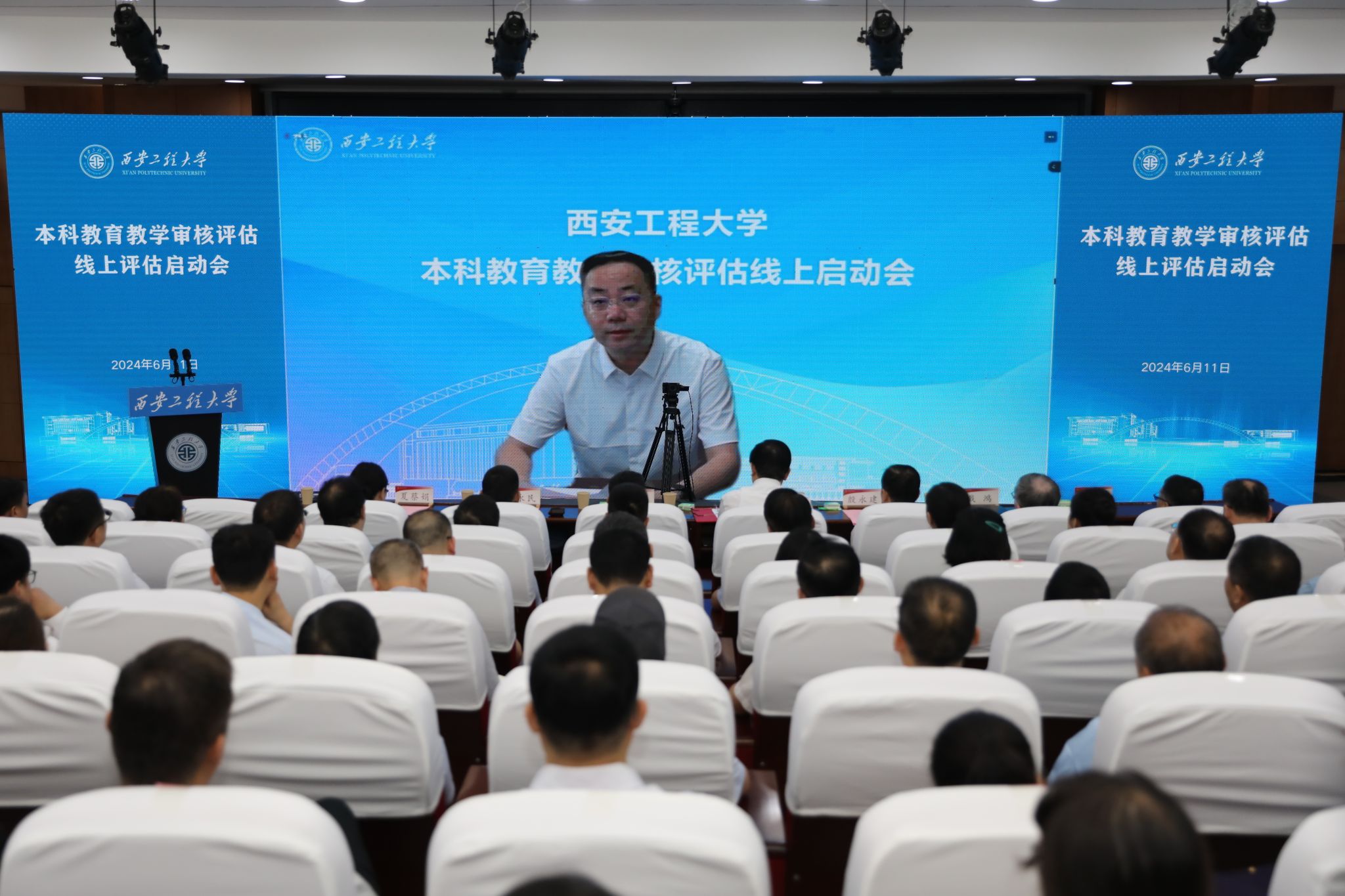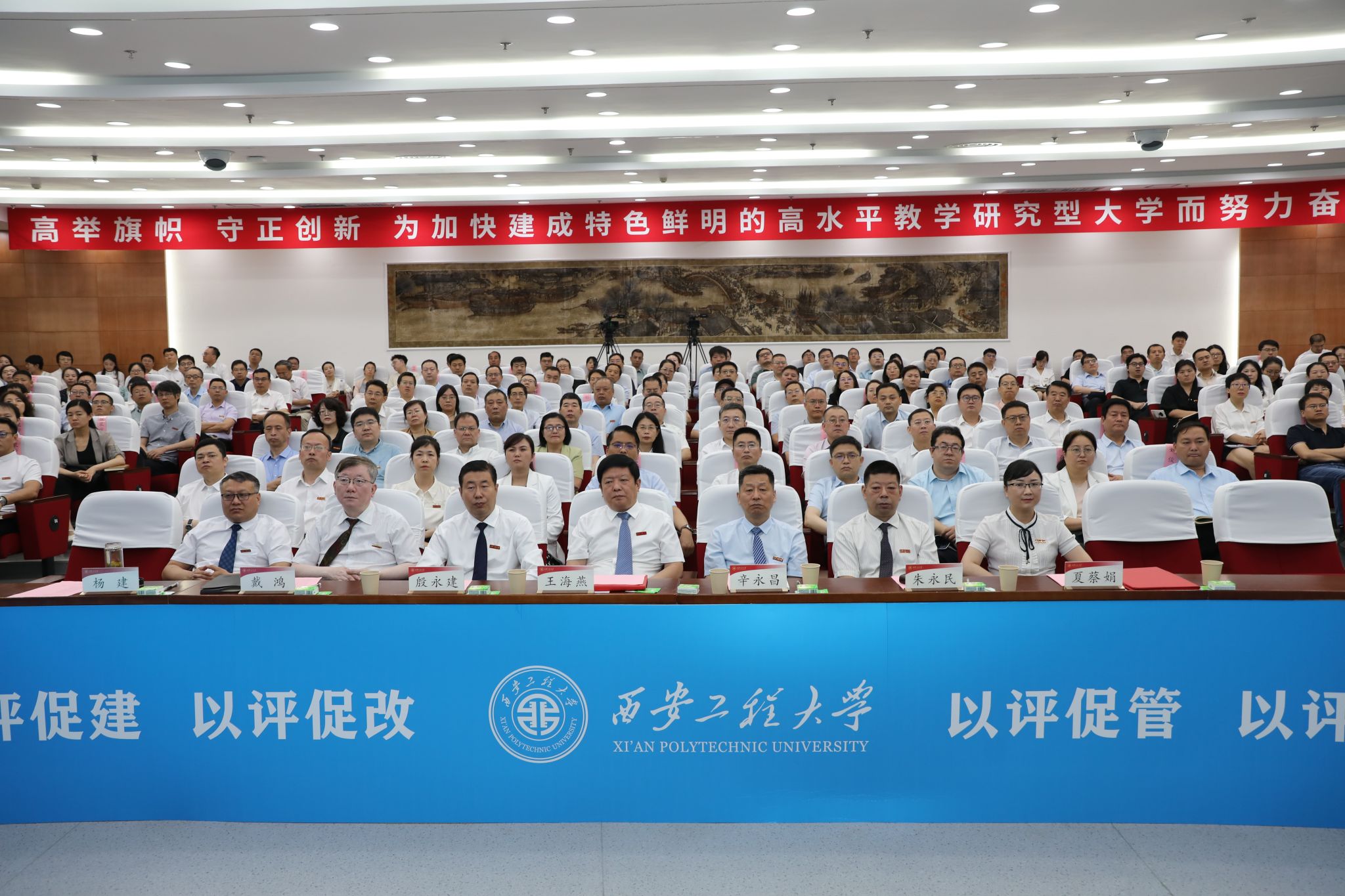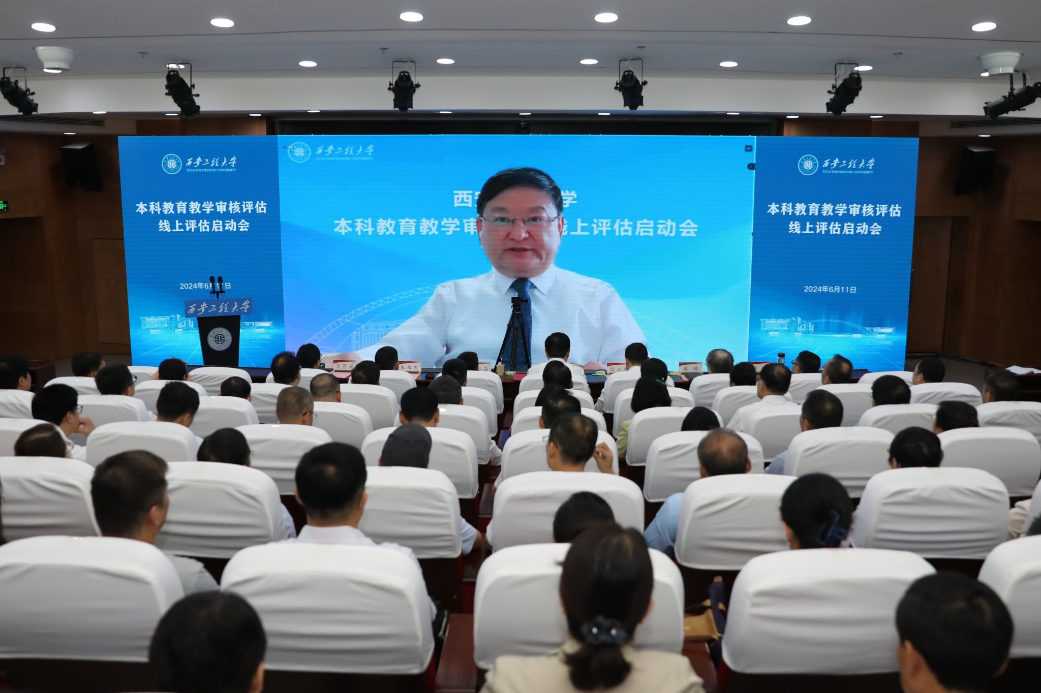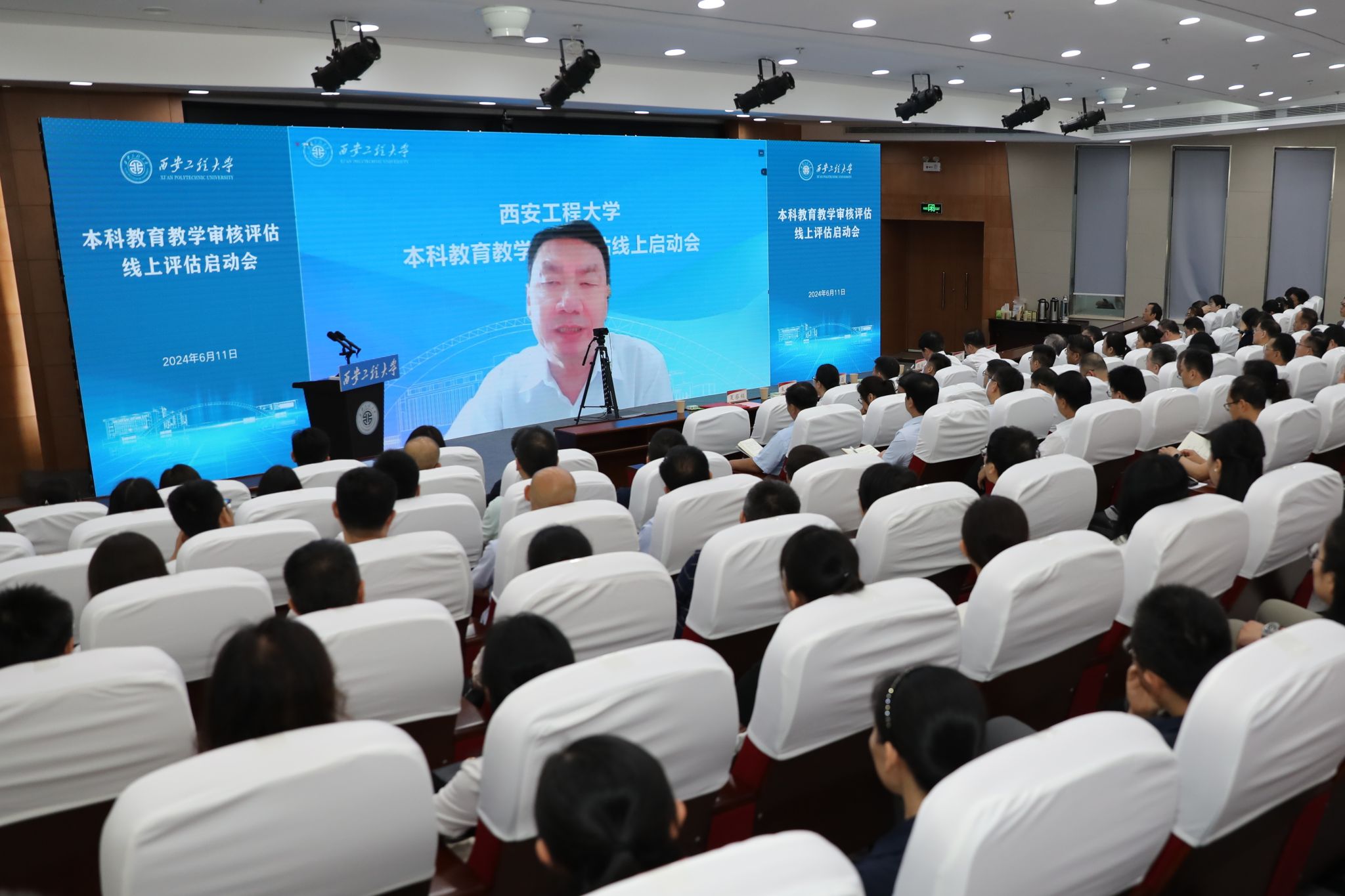 best365官网党委书记马万清线上参加会议并致辞,校长王海燕作自评补充报告,在校校领导辛永昌、殷永建、朱永民、戴鸿、夏蔡娟、杨建,各职能部门主要负责人、各学院(部)党政领导班子成员、各系(部)主任、本科教学质量督导团团长等近200人在临潼校区图书馆一层报告厅参加了会议。会议分两个阶段进行,第一阶段由副校长夏蔡娟主持,第二阶段由李志义主持。