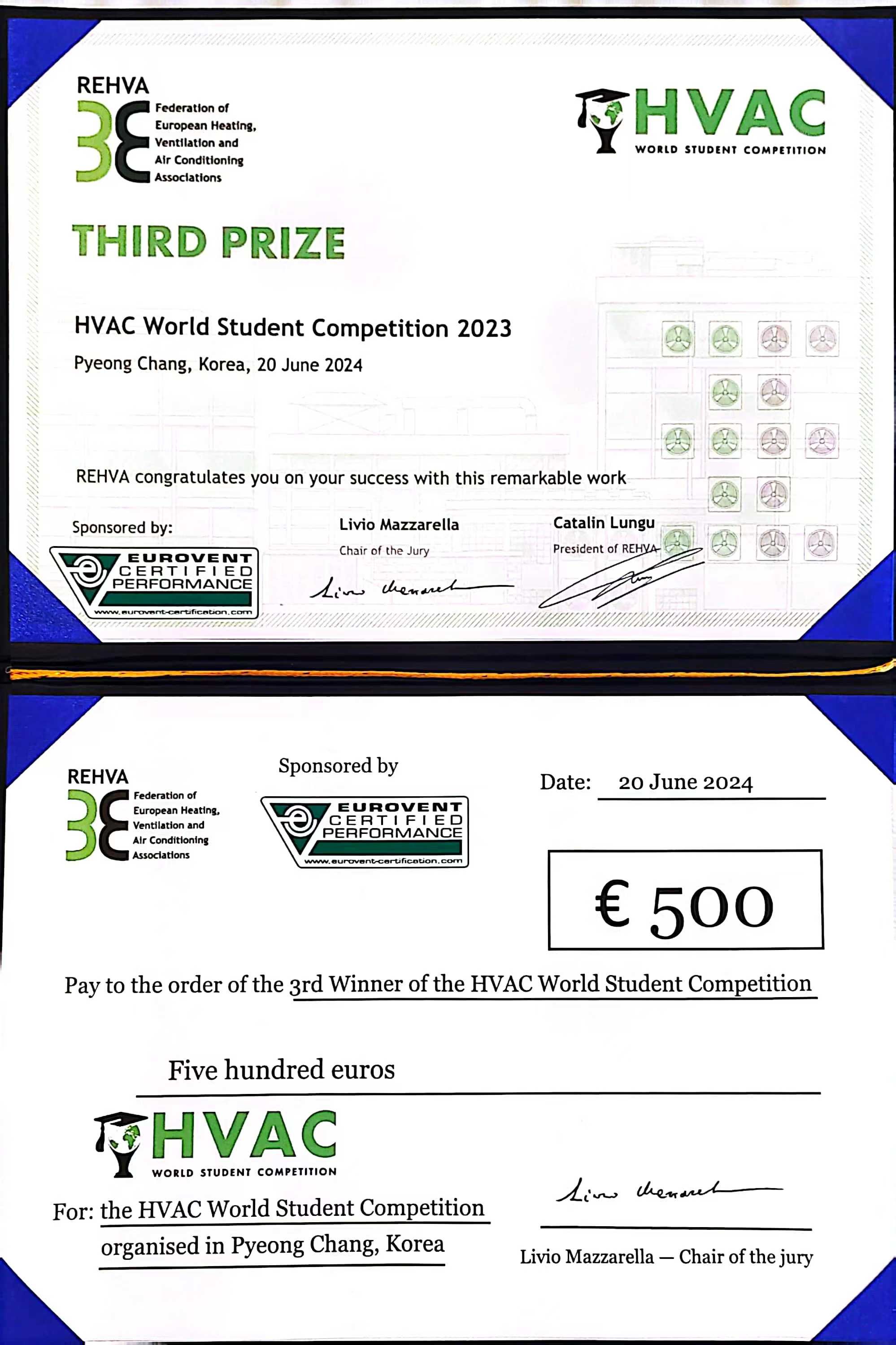6月20日,第七届世界暖通空调学生科技竞赛(HWSC,HVAC World Student Competition)在韩国平昌召开。由我国暖通空调产业技术创新联盟CAHVAC推荐的代表,“天加杯”一等奖获奖者、best365官网城市规划与市政工程学院黄翔教授指导的研究生赵娅舒、蒋苏贤在竞赛中获季军。