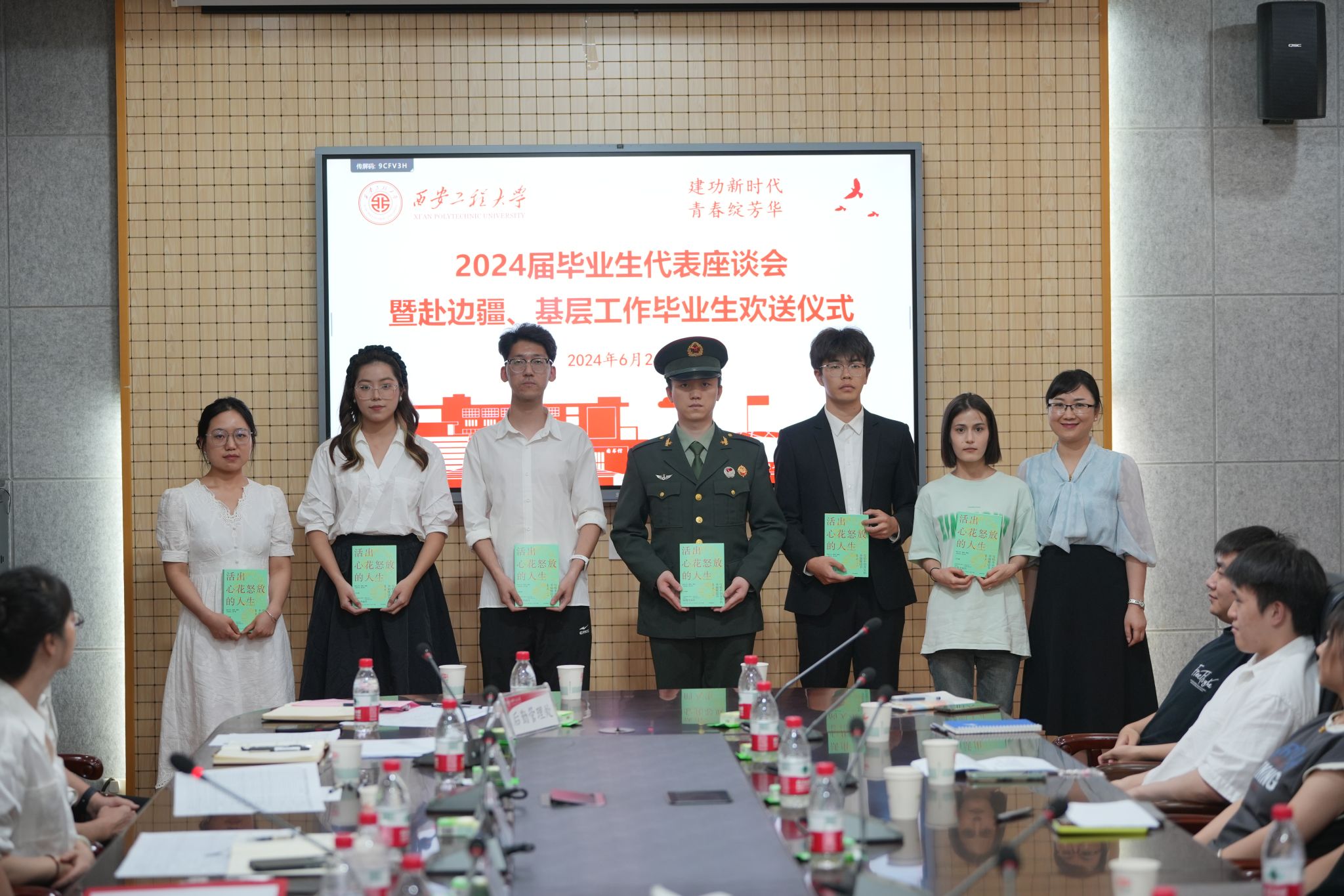 王海燕叮嘱同学们在今后的职业生涯发展中注意廉洁从业、克己修身,彰显西工程大青年风采,并号召大家细细品读《活出心花怒放的人生》一书,从中汲取奋发进取的智慧和力量,勇于挑战和超越自我,摆正心态,悦纳自己,做有情怀、有温度、充满正能量的西工程大新青年,在新时代书写属于自己的精彩篇章。同时,他要求各职能部门认真梳理并科学研究毕业生代表们提出的意见与建议,结合“一站式”学生社区综合管理模式建设工作,积极落实到学校各项具体工作中,进一步提高管理服务效能,切实解决好师生最关切的问题,推动学校治理体系和治理能力现代化水平再上新台阶。