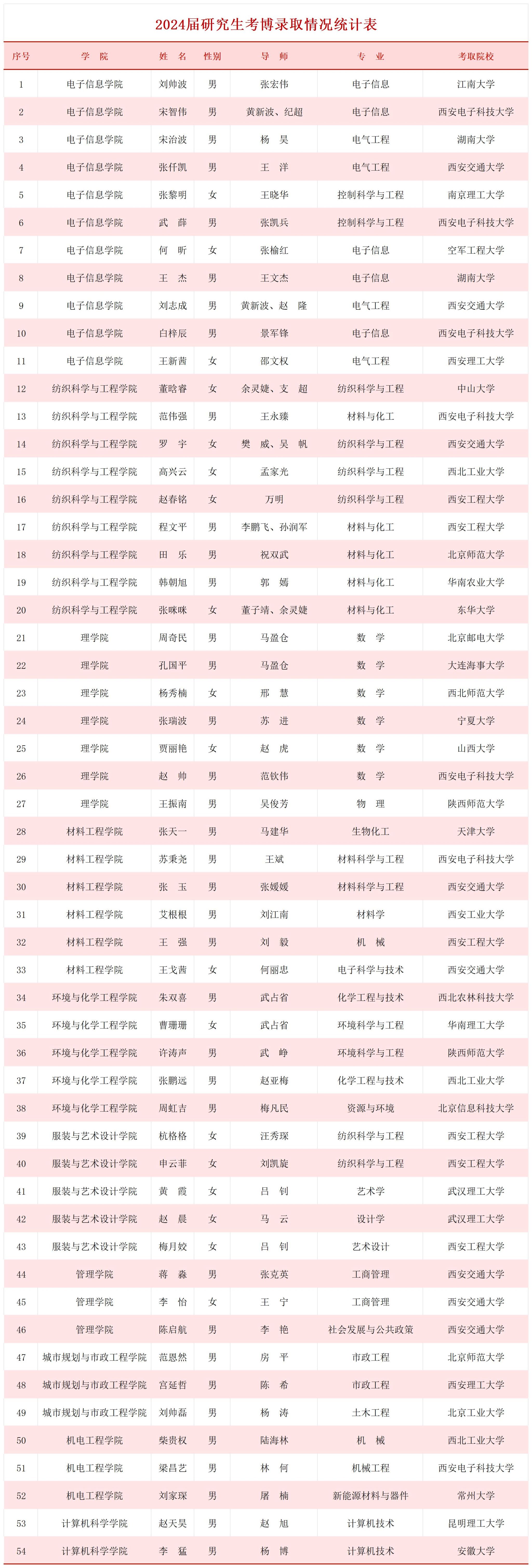 攀山至顶,行海达岸;披星戴月,终得其辉。伴随着各大高校、科研院所博士研究生录取工作接近尾声,best365官网2024届硕士毕业生不负众望,捷报频传。截至目前,best365官网共有54名应届硕士研究生考取国内知名院校博士研究生,录取院校中“双一流”高校比重达74.1%。