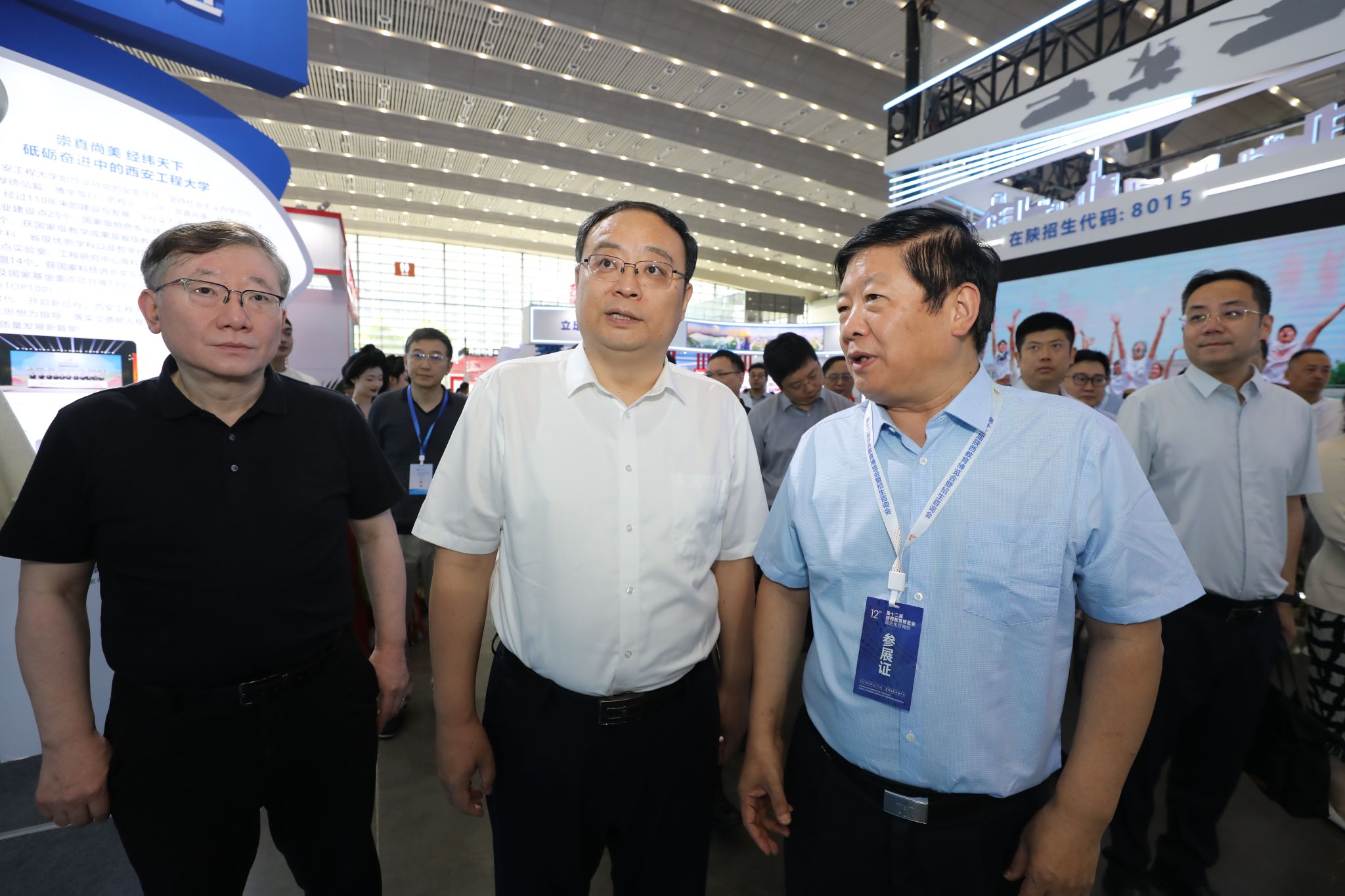 6月24日至26日,由陕西省委教育工委、省教育厅主办的第十二届陕西教育博览会暨招生咨询会在西安国际会展中心隆重举行。best365官网在会展中心1号馆显著位置设立展厅,省教育厅厅长王树声等领导到场参观指导;校长王海燕、副校长戴鸿到展区指导工作并慰问工作人员和学生志愿者,副校长夏蔡娟实地检查展厅建设情况,相关单位负责人参加活动。