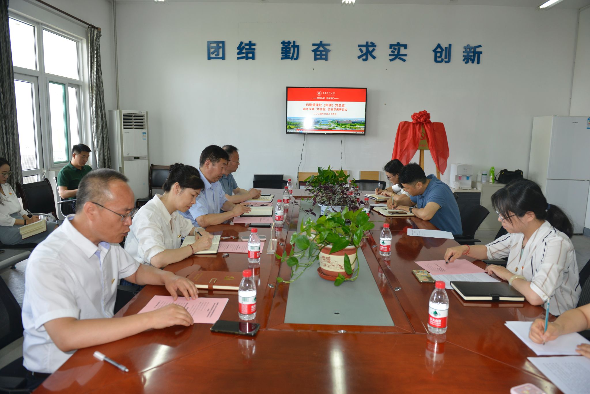 6月24日上午,后勤管理处(集团)党总支在临潼校区行政楼428会议室组织开展服务保障(功能型)党支部揭牌、党纪学习教育答题活动表彰、后勤信息宣传员聘任等仪式。校党委副书记殷永建出席会议,组织部部长黄海峙、宣传部部长王鸣媛、后勤领导班子成员及党员职工代表参加会议,会议由后勤管理处(集团)党总支书记杨森主持。