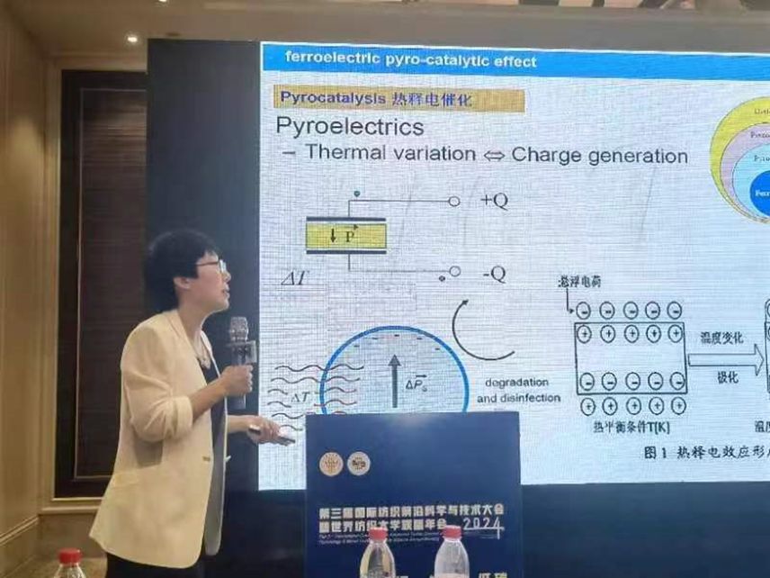 在纺织·生态·低碳分会场,武占省教授、武峥教授分别作了题为《环境功能材料创制及吸附催化降解染料研究》的主题报告和《铁电微纳米材料压催化与热释催化降解纺织印染废水》的邀请报告。会后,武占省教授和武峥教授围绕着纺织印染废水绿色处理、环境功能材料的创制、低碳可持续发展同参会专家进行了深入的交流与探讨。