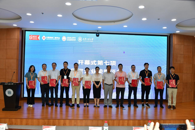 中国机械工程学会无损检测分会主任委员沈功田代表学会对学校承办赛事表示感谢,对大赛的成功举办表示祝贺;夏蔡娟和沈功田共同为支持企业颁发了荣誉证书。