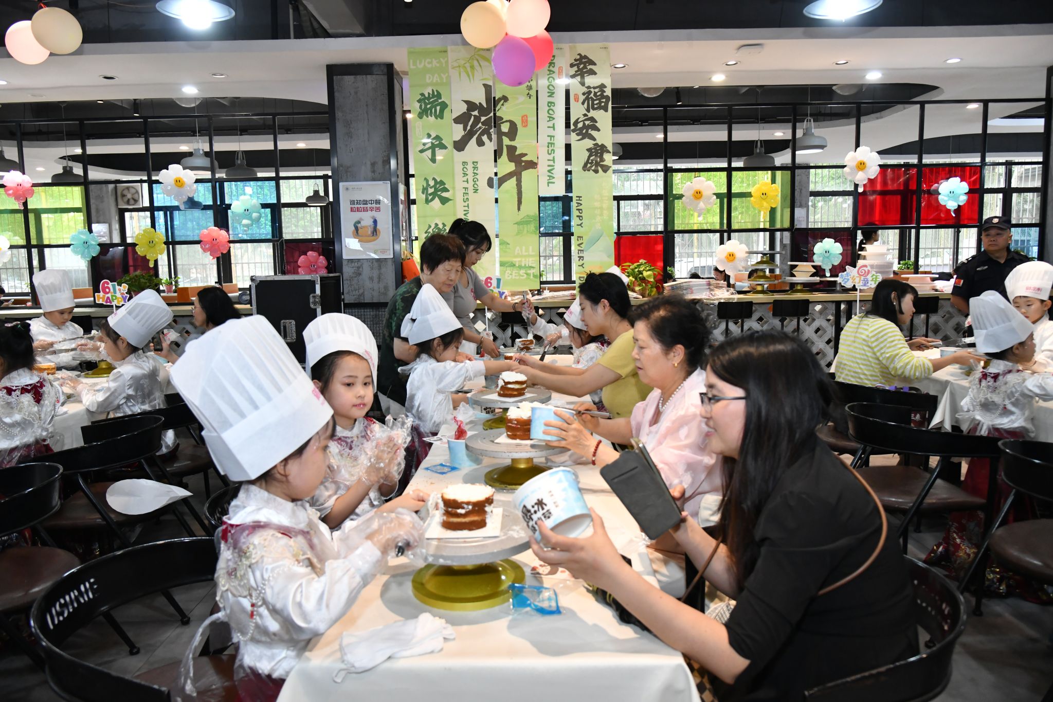 本次活动分为慰问演出活动、亲子蛋糕DIY活动两个单元。在表演环节,小朋友们身着唐装汉服,化身传统文化的小小使者,播撒文化传承的珍贵种子。打击乐《西游记》敲响经典韵律,舞蹈《上春山》勾勒出山水画卷,歌曲《学古诗》将诗词唱作童声歌谣。最后出场的亲子汉服秀《华夏云裳》,家长与孩子一起享汉服之美,品华夏之韵,让中华优秀传统文化的种子在孩子们的心田生根发芽。在亲子蛋糕DIY 活动中,小朋友们在家长的陪伴下化身“小小糕点师”,小心翼翼地涂抹奶油、摆放水果,勾勒图案,享受亲子间的默契与爱意。孩子们在艺术表演中感受国风雅韵,在动手实践中体验创造乐趣,度过了令人难忘的儿童节。