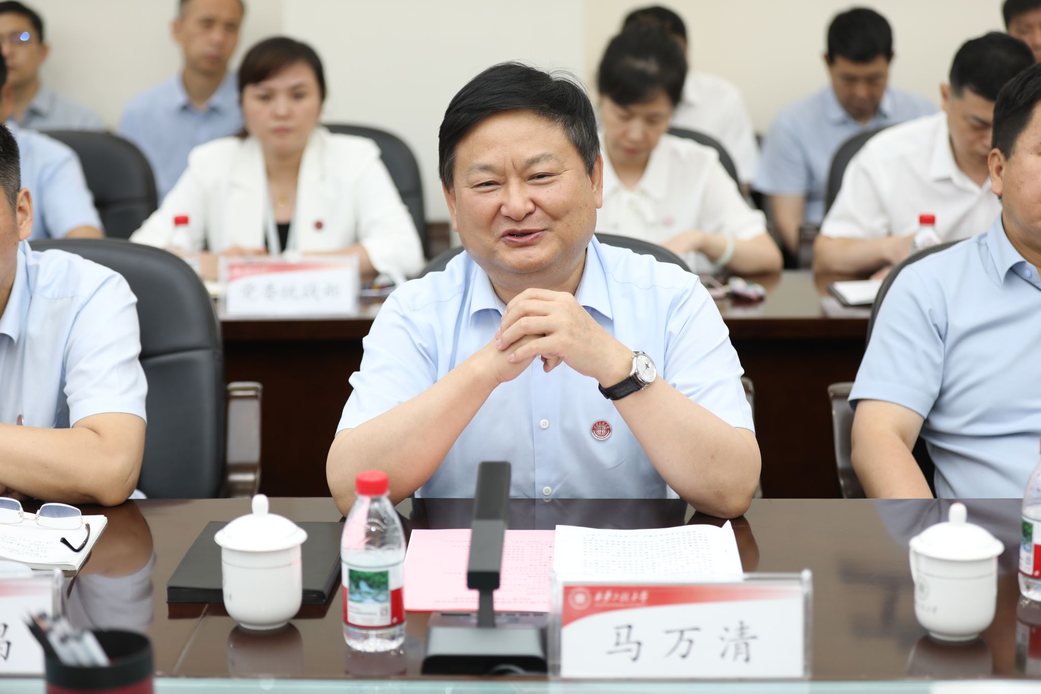 校领导马万清、井浩、辛永昌、殷永建、朱永民、戴鸿、夏蔡娟、杨建、张洛红,各职能部门负责人,各学院党委书记、院长等参加了见面会和意见交流会。