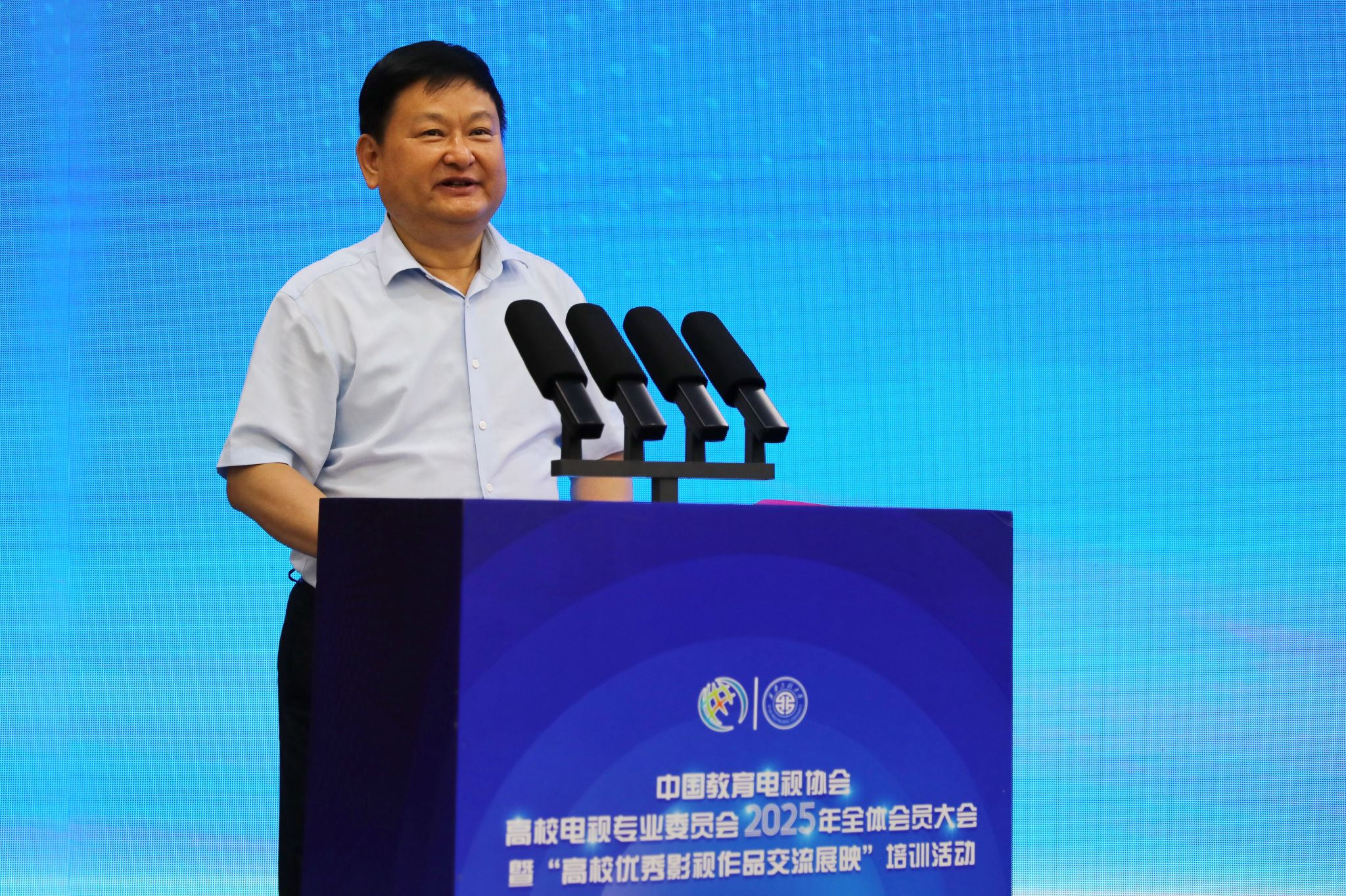 马万清在致辞时简要介绍了学校基本情况和学科建设情况,他希望各位来宾通过本次会议的交流和分享,获得传播教育好声音的新理念、得到技术赋能影视创新传播的新启发,找到繁荣校园文化发展的新路径,形成教育电视高质量发展的新共识,一同为高等教育事业的发展繁荣、为教育强国建设提供思想支撑和舆论引领。