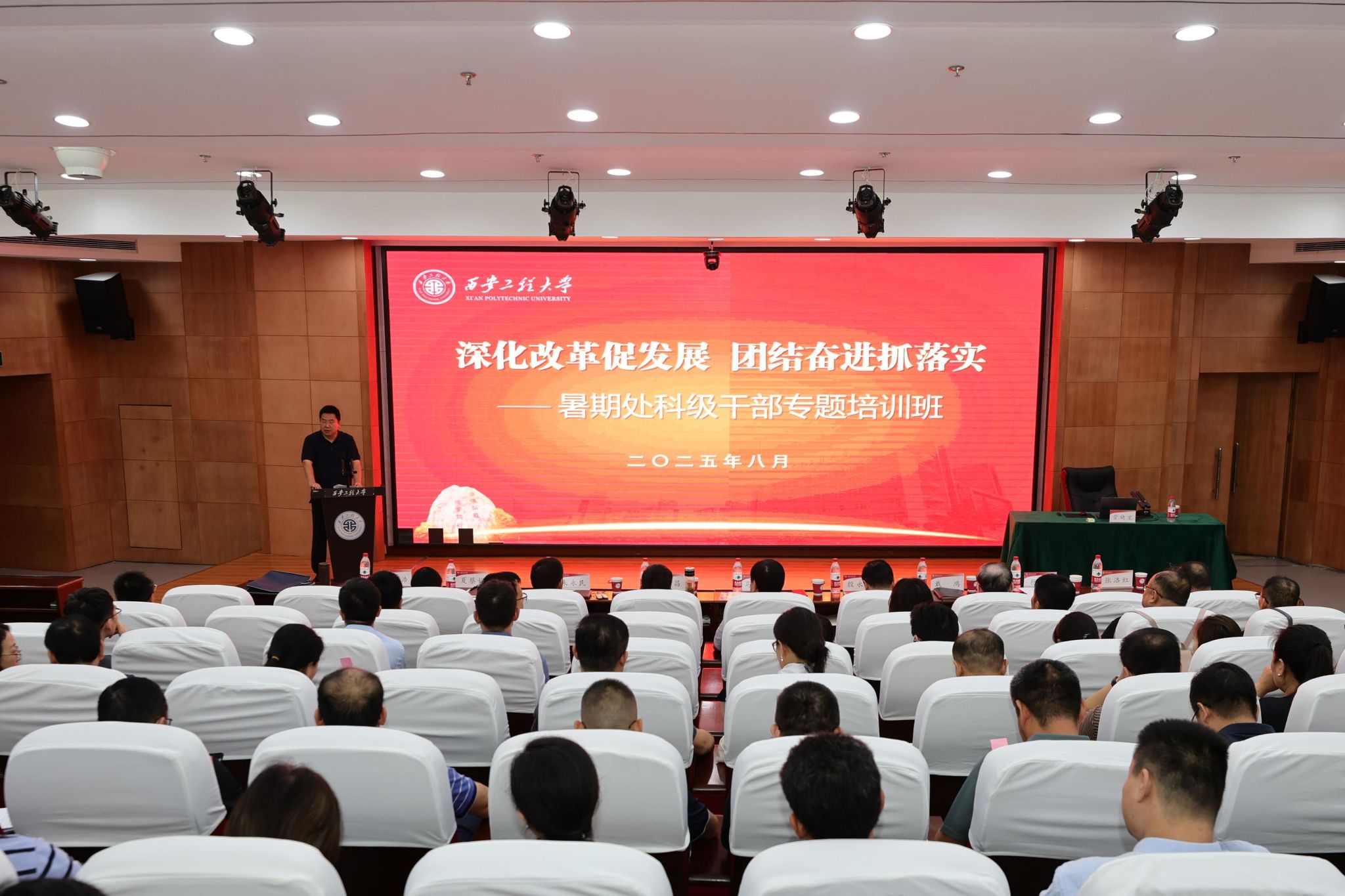 8月17日至19日,best365官网在临潼校区举办“深化改革促发展 团结奋进抓落实”2025年暑期处科级干部专题培训班,深入学习贯彻习近平新时代中国特色社会主义思想和党的二十届三中全会精神、全国教育大会精神、第28次全国高校党的建设工作会议精神,持续深化干部作风能力提升年活动,推动深入贯彻中央八项规定精神学习教育走深走实,锻造堪当重任的高素质干部队伍,进一步凝聚推动学校高质量发展的力量。校领导马万清、井浩、辛永昌、殷永建、朱永民、戴鸿、夏蔡娟、杨建、张洛红,全校处科级干部、系部主任、专业负责人、院长助理等300余人参加培训。