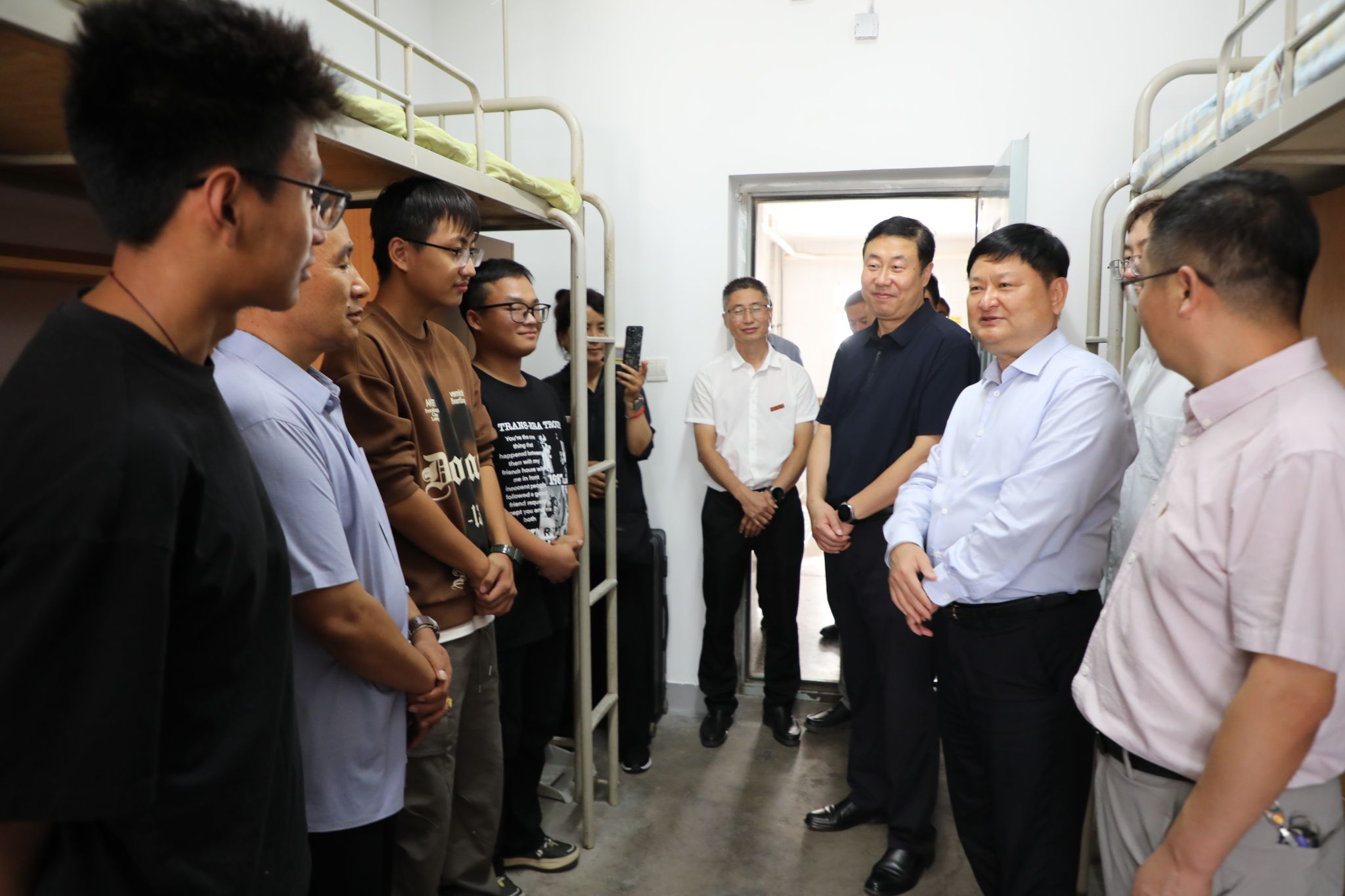为保障迎新工作平稳有序,学校精心筹划、周密部署,校党委书记马万清主持召开迎新工作协调会,要求各单位高度重视、密切协作,全力以赴做好各项迎新保障。校领导针对相关环节流程提出明确要求,确保工作高质开展、高效落实。迎新期间,马万清等校领导在报到现场与远道而来的新生和家长亲切交流,欢迎新同学们加入best365中国官方网站的温暖大家庭,并前往各迎新点、宿舍、食堂等看望慰问迎新工作人员、志愿者,对大家的辛勤付出给予肯定和感谢。