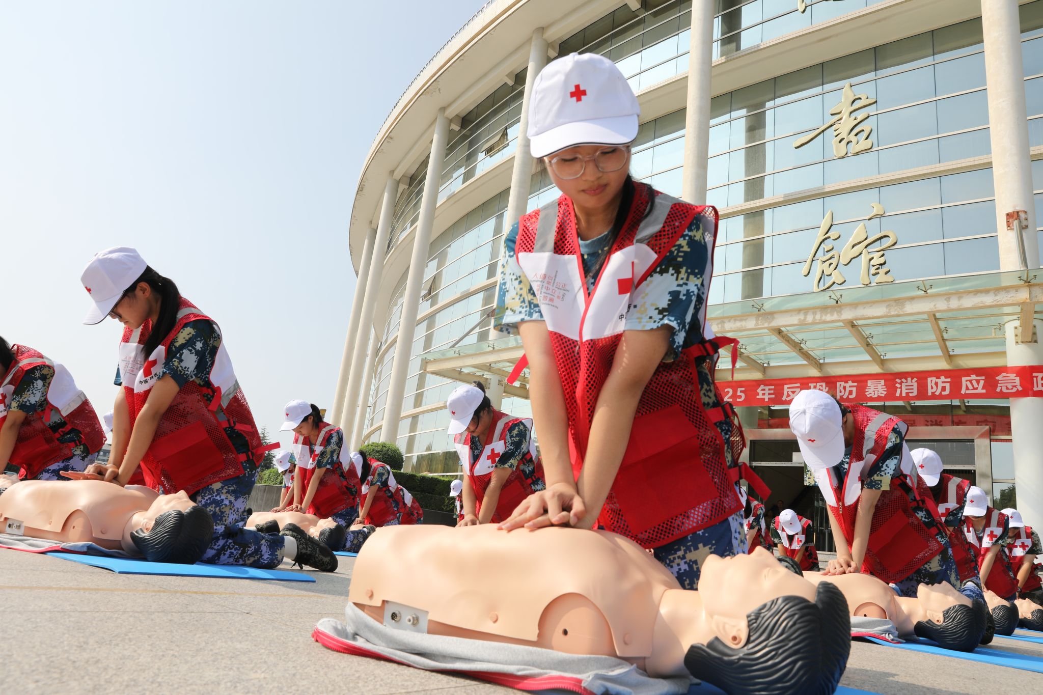 在反恐处突教育中,模拟3名“暴徒”携危险物品闯入校园,学校保卫处迅速启动应急预案,与警方联动快速消除安全隐患;穿越机、无人机灵活穿梭,精准抛投救生圈、打击“嫌疑人”;师生零距离观摩了擒敌拳展示、警犬精准排爆、交通指挥等科目并参加安全问答。在消防安全教育环节,图书馆拉响火情警报,工作人员迅速组织人员疏散和有序撤离;消防队员和医护人员现场展示灭火、逃生、急救等技能,各环节配合紧密,全体参加演练师生平安抵达指定安全区域。在救援技能展示环节,4名专业人员演示心肺复苏方法,36名学生分组进行学习和演示,整场救护演练有序高效,让师生掌握了实用急救技能。