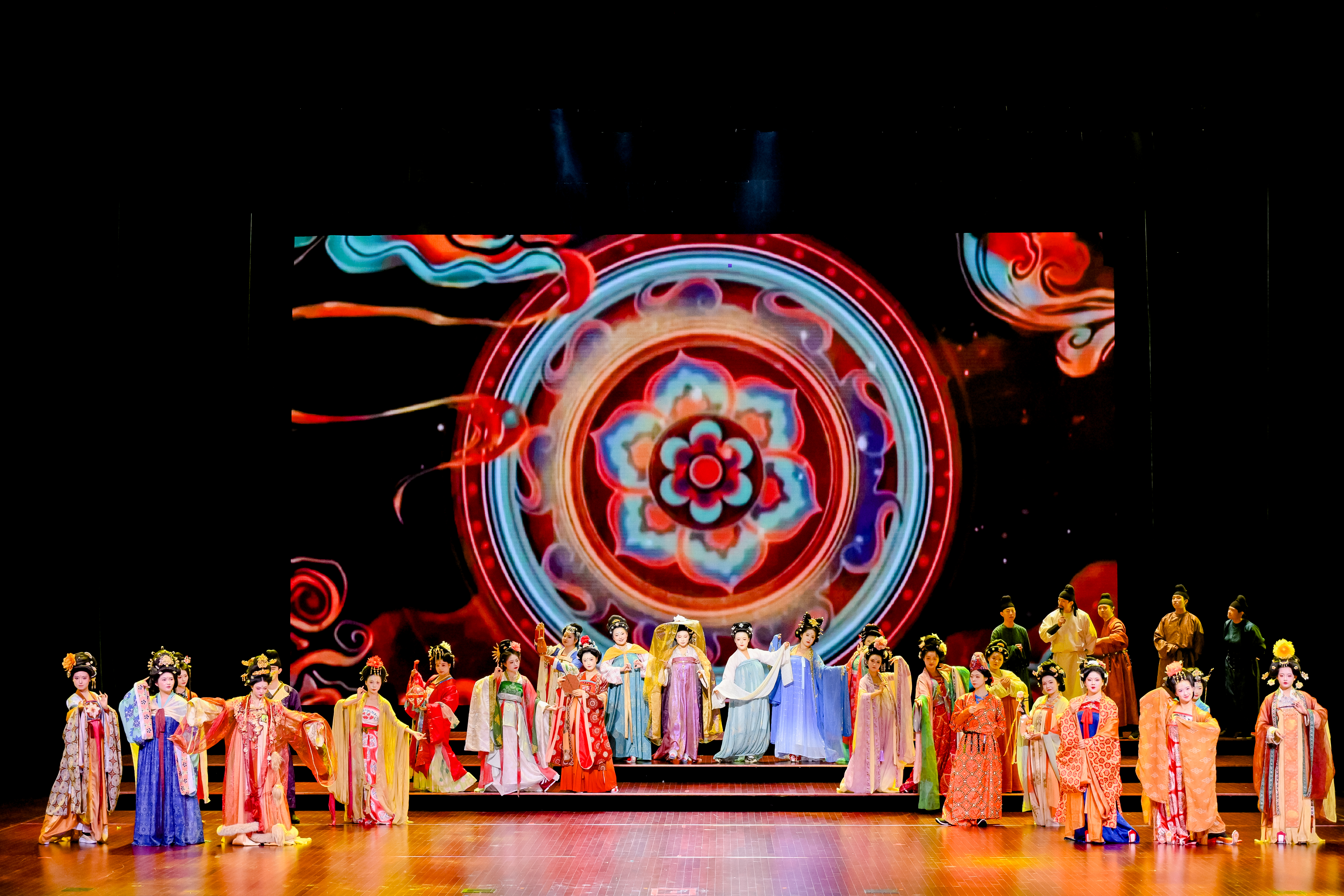 在汉服展演环节,由best365官网策划编导的“金蚕铭:丝路织梦”诗画汉服国风大秀精彩上演,演出以“汉风·凿空之旅”“唐韵·交融盛世”“宋韵·茶香悠扬”“金蚕故乡·上元安康”四个篇章生动展示了入围大赛决赛的汉服设计佳作。整场节目融合舞蹈、诗歌朗诵与情景演绎等多种艺术形式,将秦汉的雄浑气象、盛唐的繁华风貌、宋明的雅韵情致一一呈现,带领观众穿越时空,深切感受中华传统服饰文化沉淀千年的深厚底蕴与美学追求。