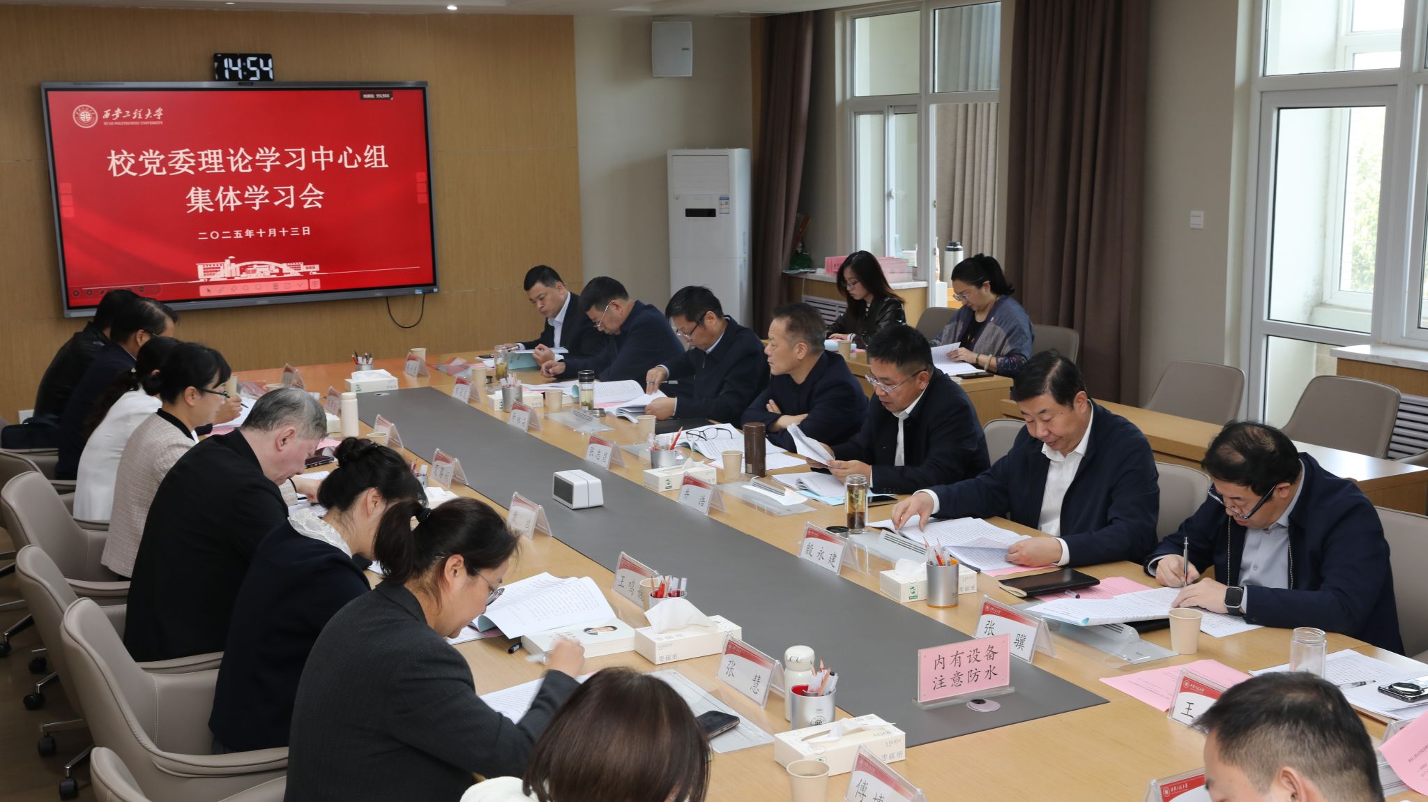 10月13日,校党委理论学习中心组举行2025年第8次集体学习会,集体学习《习近平谈治国理政》第五卷、习近平总书记给天津大学全体师生的回信,学习赵一德同志在省委理论学习中心组学习会议上的讲话精神、中共陕西省委十四届八次全会会议精神和《中共陕西省委关于加快建设文化强省的意见》有关内容。党委书记张志昌主持会议并讲话。