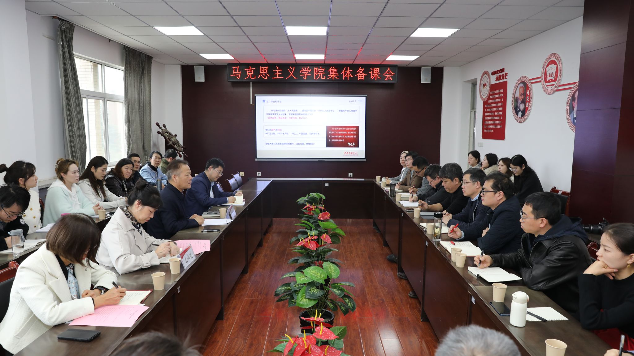 10月22日,马克思主义学院在临潼校区举行集体备课会,校党委书记张志昌到会指导并作专题报告,党委宣传部负责人、学院党政班子成员及师生代表等20余人参加会议。