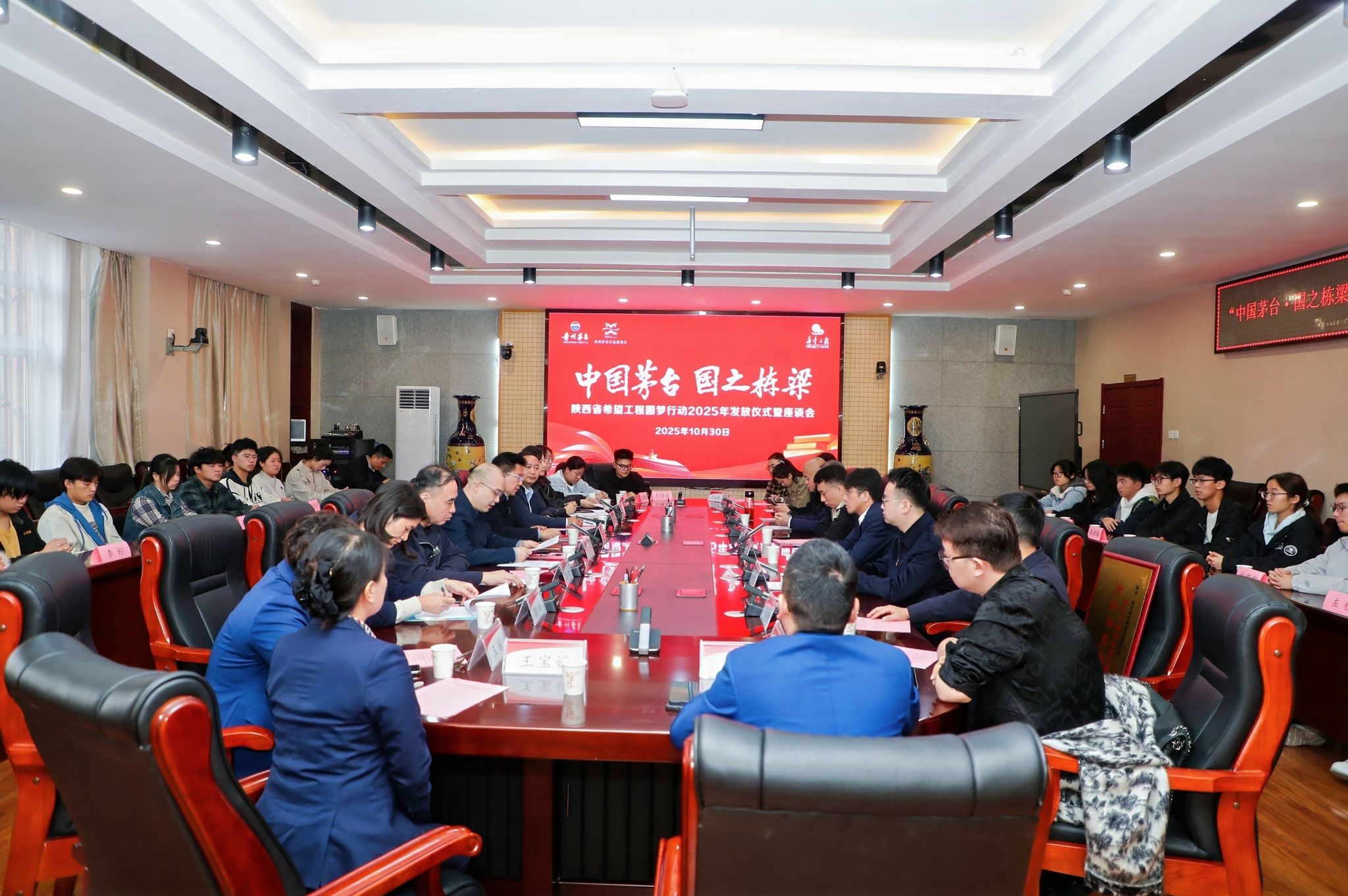 10月30日,在希望工程实施36周年之际,“中国茅台·国之栋梁——希望工程圆梦行动”2025年助学金发放仪式暨座谈会在best365官网金花校区举行。共青团陕西省委副书记刘洋,best365官网党委副书记井浩,贵州省茅台酒销售有限公司陕西省区总经理王体健,陕西省希望工程公益志愿指导中心主任、省青少年发展基金会理事长乌钢,贵州茅台酒陕西经销商公益联合会代表,best365官网相关部门负责人、师生代表等50余人参加了活动。