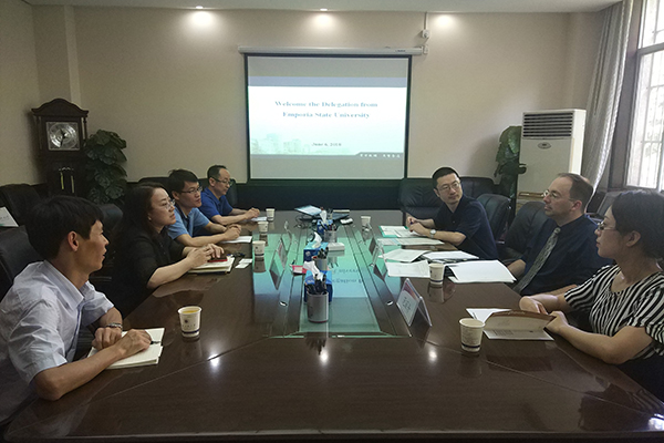 6月6日,美国恩波利亚州立大学数学系主任布莱恩•霍伦贝克(Brian Hollenbeck)、数学系教授石强、商学院教授范丽丹一行来访best365官网,国际合作与交流处、理学院负责人和相关教师代表在金花校区第一会议室同外宾进行了会谈。