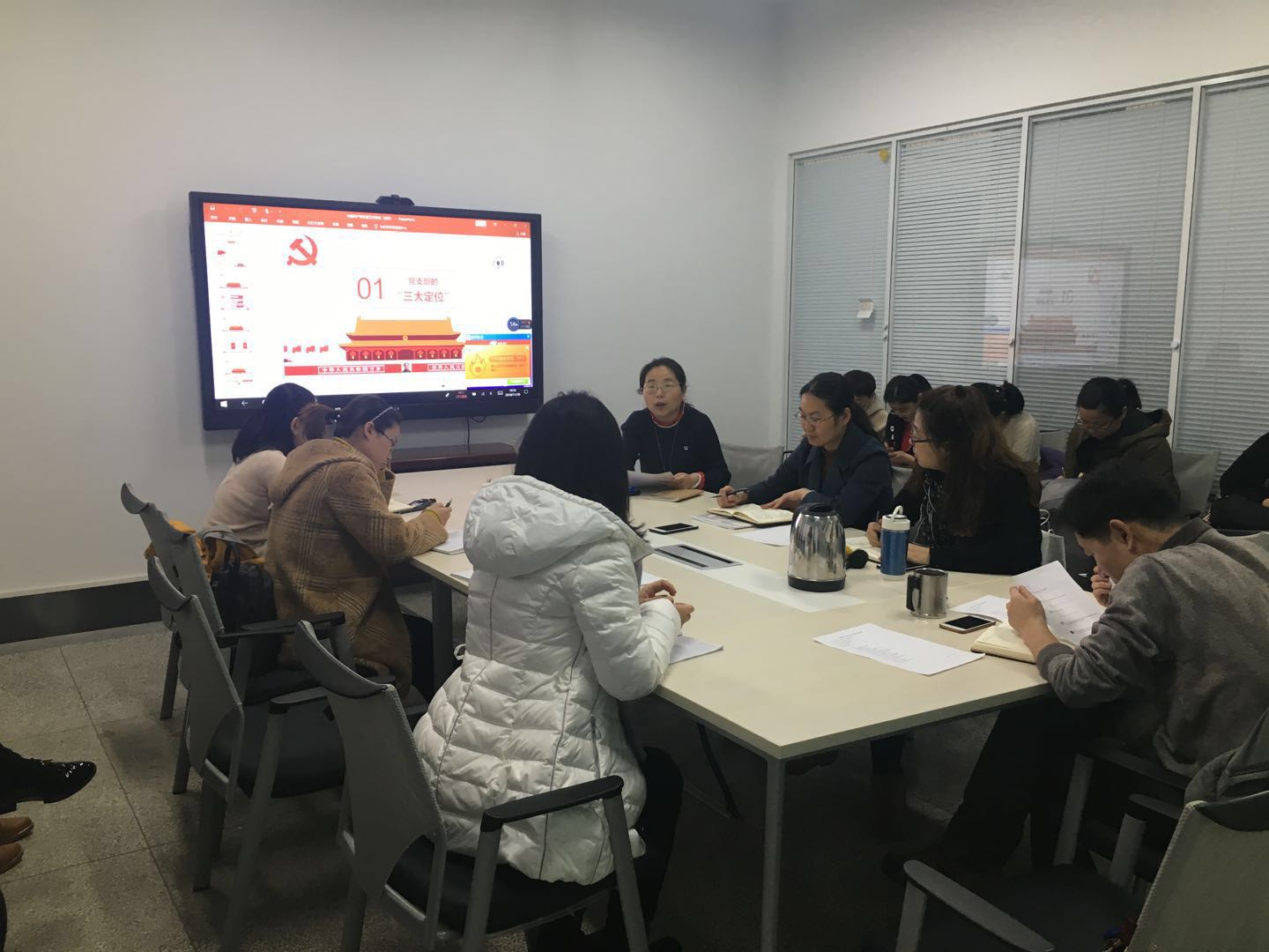 11月30日下午,图书馆党支部在金花校区图书楼五楼召开党员学习大会,党支部副书记薛红波主持,全体党员参加。