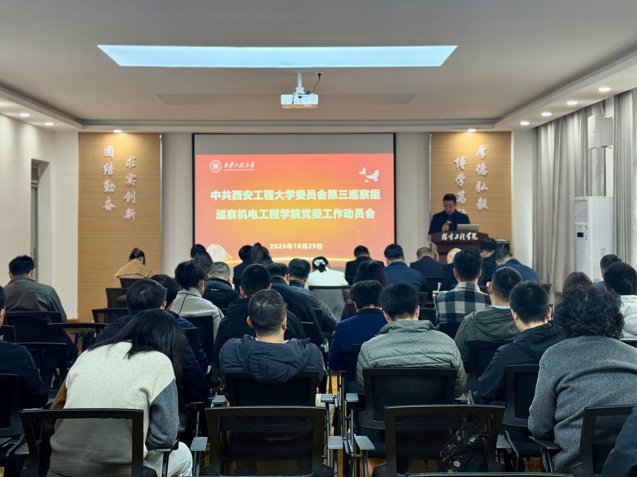 校党委第三巡察组全体成员,党委组织部负责人及相关人员,机电工程学院领导班子全体成员、党委委员、教授委员会委员、分工会主席、副高职称及以上人员、科级以上干部、党支部书记、系(部)负责人参加会议。
