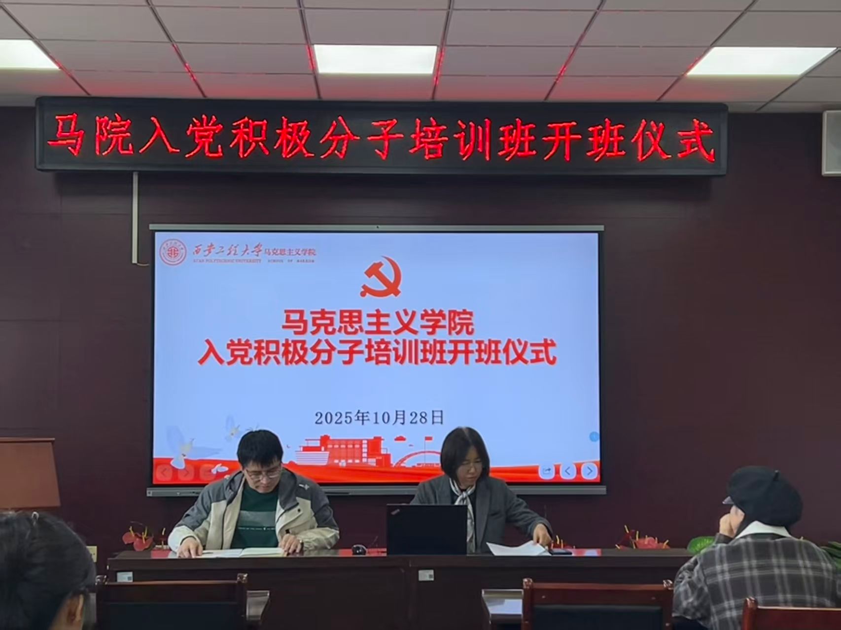 近日,马克思主义学院党委在临潼校区举办入党积极分子培训班,本次培训班通过专题授课、观看视频、交流研讨等多种方式进行,2024级全体入党积极分子参加培训班。