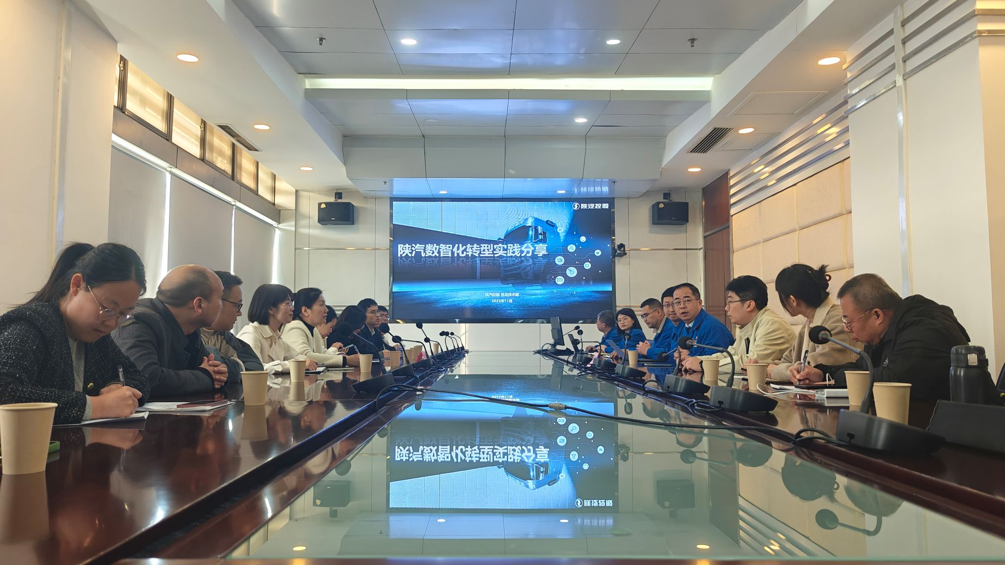 参观结束后,双方举行了座谈会。陕汽集团信息化部副部长及相关科室负责人、技术工程师与管理学院代表团围绕企业数智化转型主题进行了深入交流。陕汽的工程师详细介绍了企业在信息化建设方面的做法与成效。从研发设计的数字化仿真,到生产制造的智能化管控,再到营销服务的平台化运营,陕汽已构建了覆盖全价值链的信息化系统。