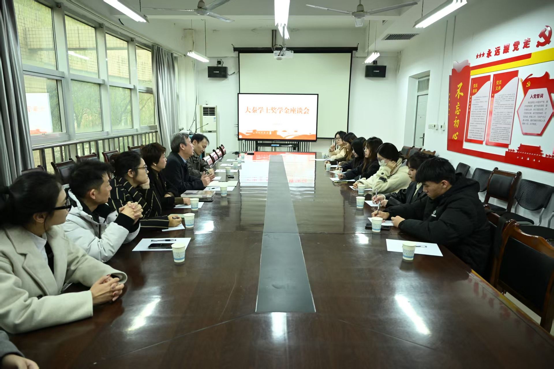 12月3日,陕西大秦学士服饰有限公司董事长雷刚一行赴临潼校区与服装与艺术设计学院获得“大秦学士奖学金”的优秀学子开展座谈。学院党委副书记马磊及相关师生代表参与座谈。