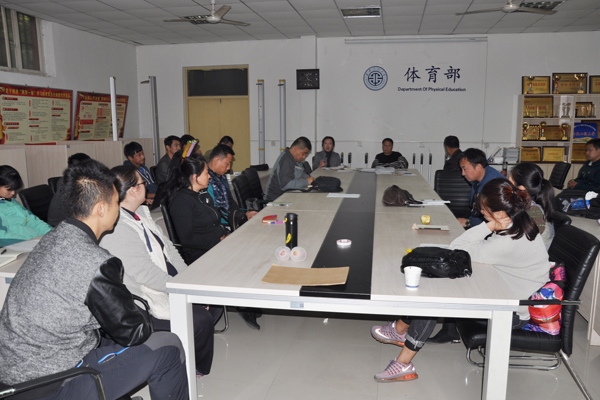 2017年10月25日下午,体育部在金花校区办公室召开体育部人才工作动员部署会,体育部党政领导、学术委员会委员、部全体班子成员以及40岁以下教职工共计20余人参加了会议,会议由体育部主任薛海红主持。
